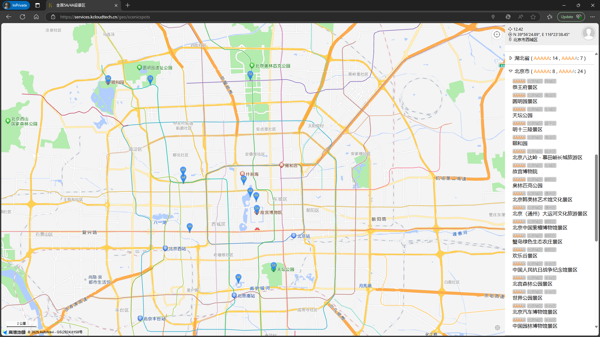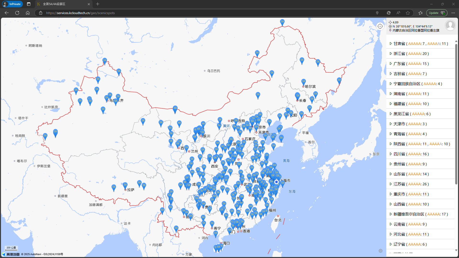 包含全国所有5A和4A级景区(3600+)及部分省市的3A/2A景区,按省份分类,方便快速浏览,和在地图上定位指定景区。